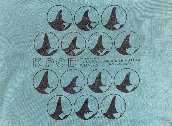 New and updated for 2025! This unique, stylish t-shirt features the saddle patches and dorsal fins of K Pod!