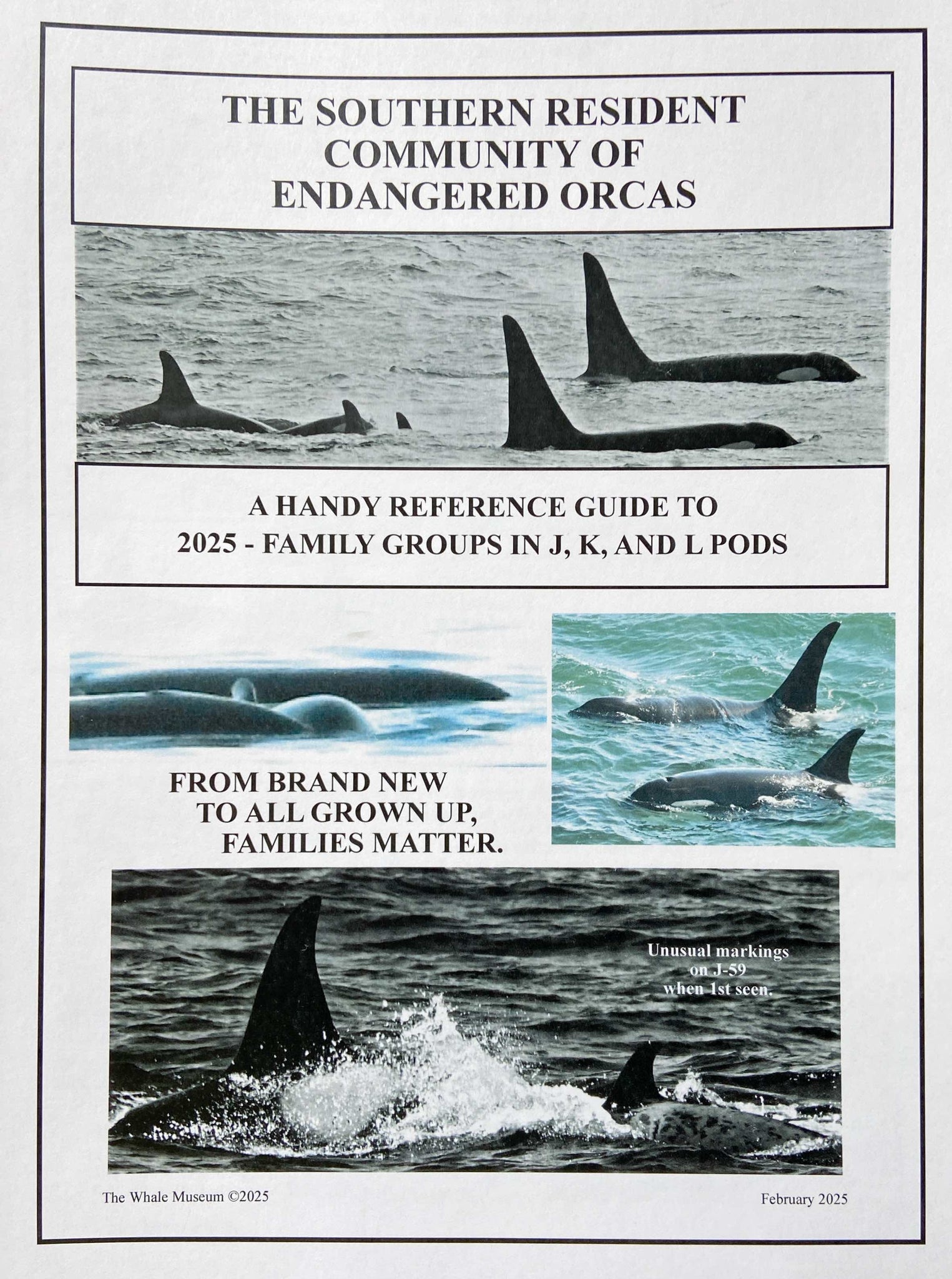 A guide created by San Juan Island Naturalist and photographer Jeanne Hyde for The Whale Museum. The guide provides a great overview of the Southern Residents' family groups. With multiple images in identifying individual SRKW and an in-depth explanation of the family groups within J, K, and L pods.