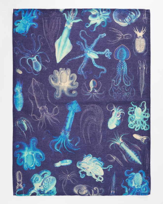 And whether you like studying them or eating them (or both!), this Octopus & Squid Tea Towel is just the upgrade your kitchen has been waiting for. Celebrate your love of all things cephalopod with this inky blue design!