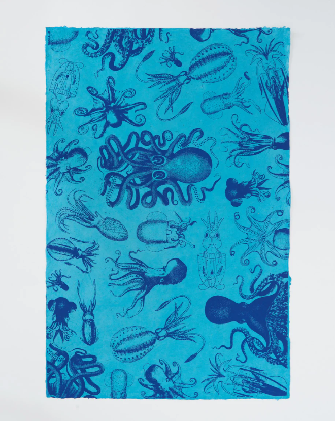In shades of watery and inky blue, these cephalopods will wrap themselves nicely around all your gifts and packages.