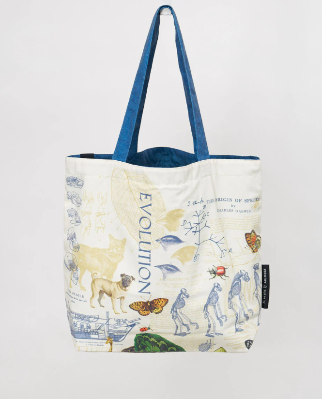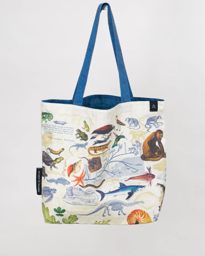 These sturdy canvas bags are reversible with a zipper pocket in an oceanic teal blue on one side, or you can flip it around and wear it with the printed design on the outside for everyone to see.