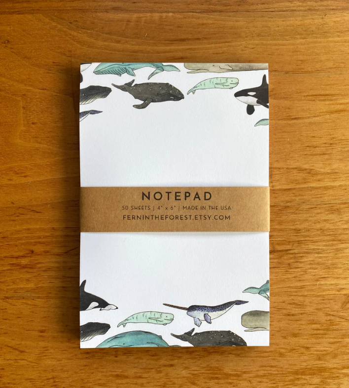 Nature notepads made by Fern in the forest owner and San Juan island local Gina Levantini original drawings. These cute: beetle, wildflower, whale and mushroom notepads are perfect for nature and stationery lovers! These notepads make great to-do lists, market lists, or even little daily love notes.