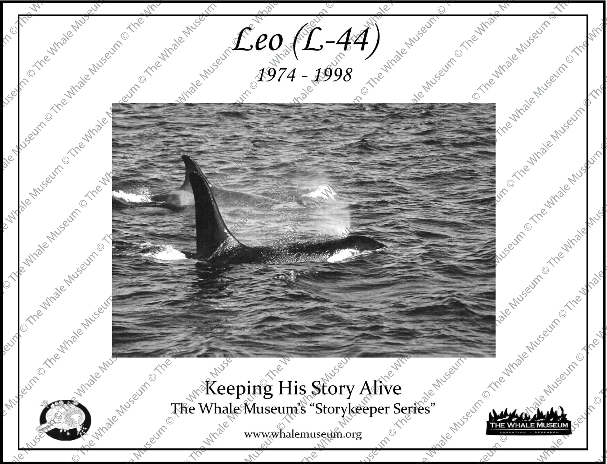 Leo (L-44) is one of the few whales to get a name change. "Cleo, known to scientists as L-44, is the nine-year old daughter of Olympia (L-32) and the sister of Spirit L22 and Disney (L-56). She is a member of LPod, a group of 50 orcas in Greater Puget Sound." This was part of Leo's biography from 1984. Imagine everyone's surprise when Leo (L-44) 's dorsal fin began to sprout in 1987 and Cleo became Leo!