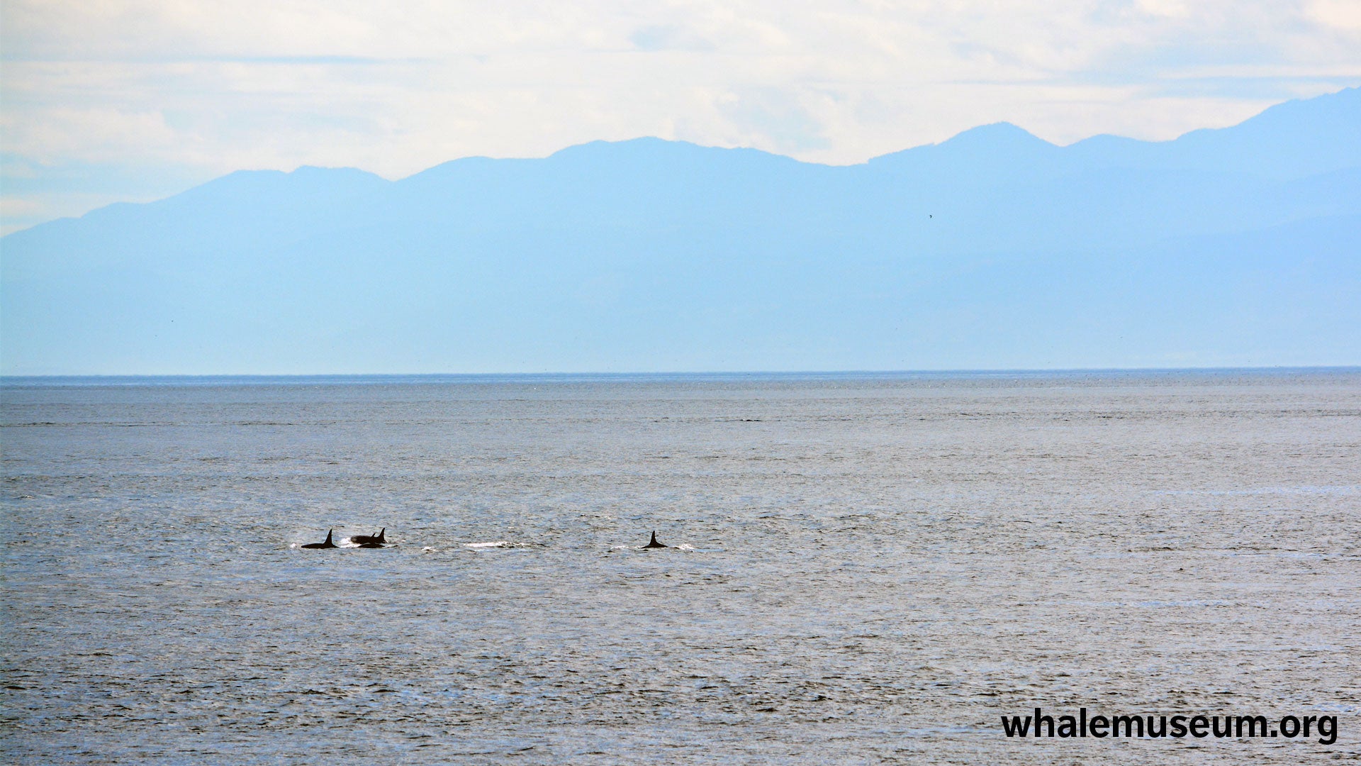 Photo of Orcas in front of the Olympic Mountains that can be used as a virtual background for platforms like Zoom. Our gift to you when you make a $10 donation to support The Whale Museum.