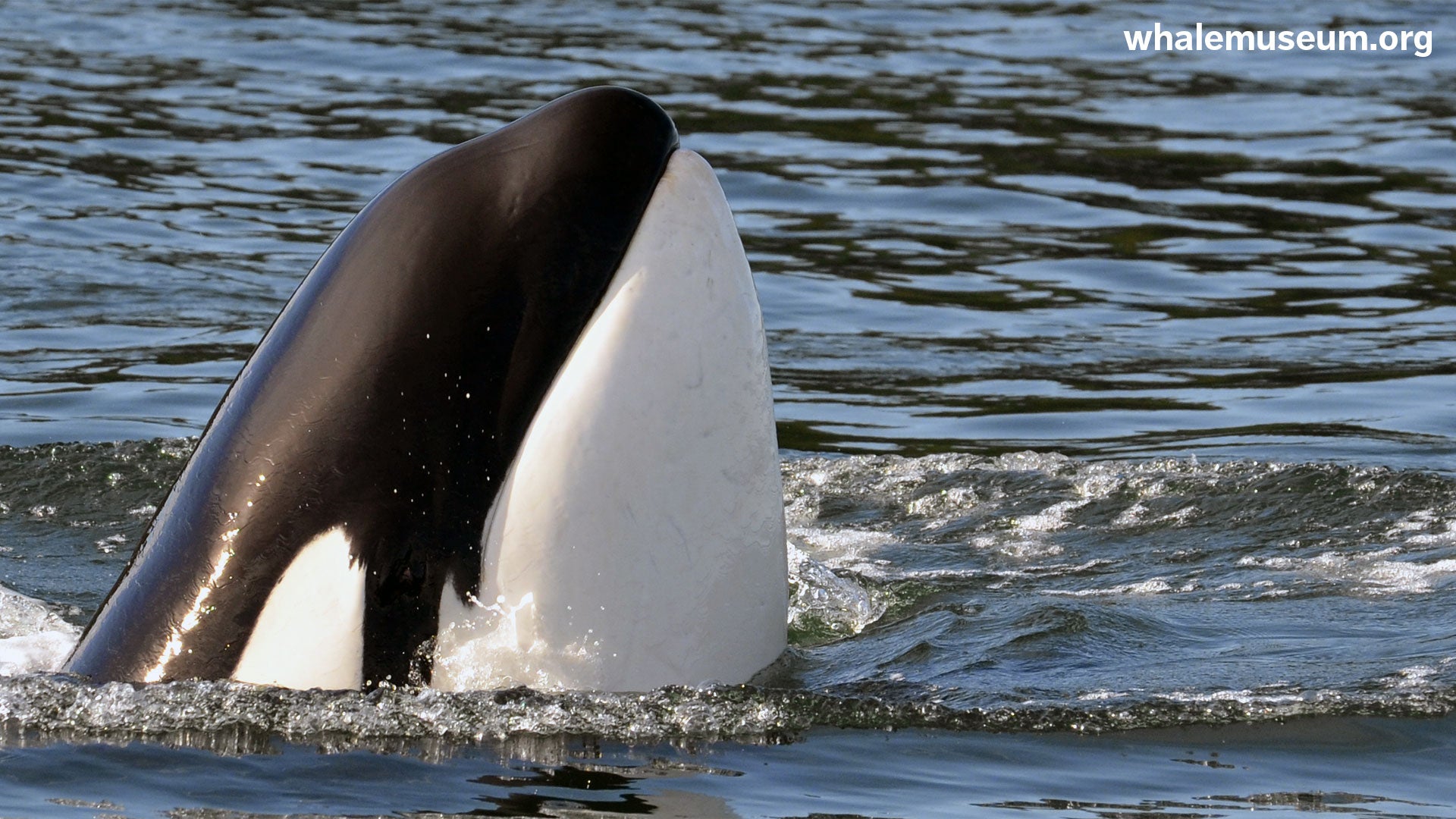 Photo of an Orca spy hopping that can be used as a virtual background for platforms like Zoom. Our gift to you when you make a $10 donation to support The Whale Museum.