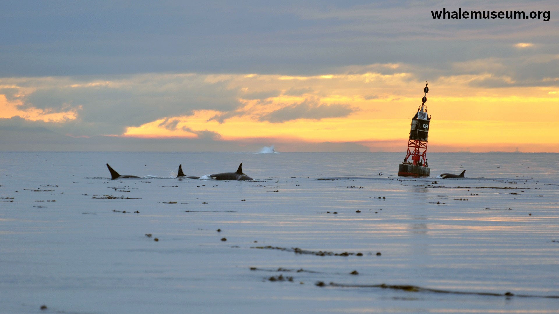 Photo of Orcas at sunset that can be used as a virtual background for platforms like Zoom. Our gift to you when you make a $10 donation to support The Whale Museum.