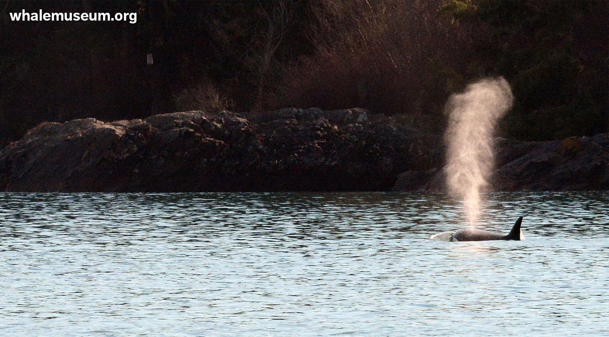 Photo of a solo Orca exhaling that can be used as a virtual background for platforms like Zoom. Our gift to you when you make a $10 donation to support The Whale Museum.