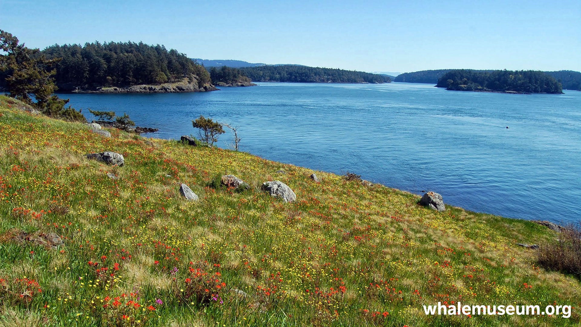 Photo of flowers on Yellow Island that can be used as a virtual background for platforms like Zoom. Our gift to you when you make a $10 donation to support The Whale Museum.
