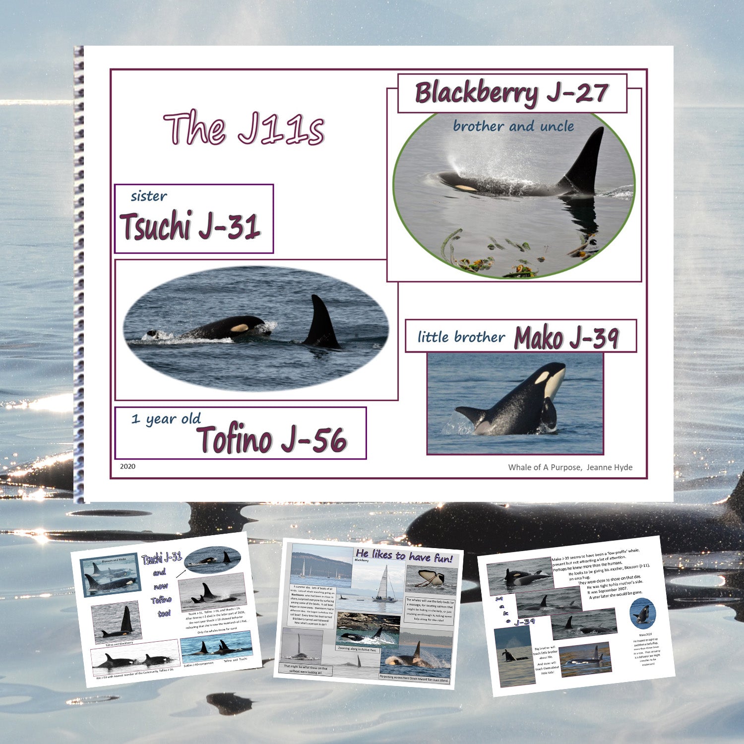 From abundant times to tough times, the Southern Residents don't give up in their pursuit of finding food.  Humans are often fascinated by these most magnificent beings. Each whale in the Community is an individual with his/her own personality. This booklet includes details from Tofino's (J-56) first year. From over 15 years observing the whales of J, K, and L pods, Jeanne Hyde has compiled booklets with images and text to tell some of the stories of members of J, K, and L pods.